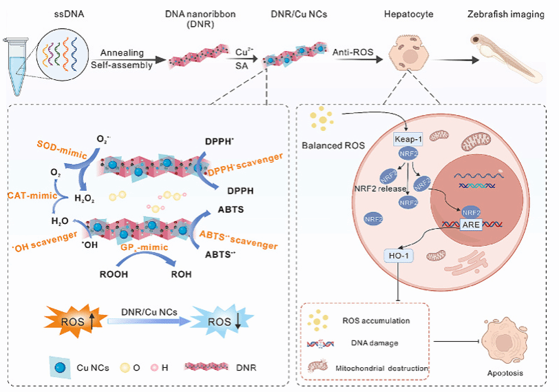 35. Na Li, Qinghong Long, Fanglan Liu, Xi Mai, Xin Sui, Shigang Liu, Yanlei Li, Xinyuan Li, Zhongfeng Gao*, Yingqi Li, Fan Xia, Cheng Wang, Dual-functional DNA nanoribbon-templated copper nanoclusters synergistically activate NRF2/HO-1 pathway for synergistic oxidative stress mitigation, Journal of Colloid and Interface Science, 2026, 702, 138837.